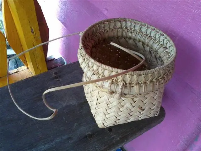 Gambar kraftangan suku kaum Begak yang dianyam menggunakan rotan saga